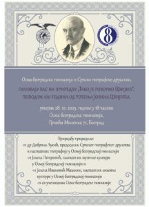 Осма београдска гимназија и Српско географско друштво позивају Вас на приредбу „Тако је говорио Цвијић“ поводом 160 година рођења Јована Цвијића. Приредба ће се одржати у уторак 28.10. 2025. године у 18 часова у Осмој београдској гимназији, Грчића Миленка 71. Београд. Приредбу су приредиле: Др Добрила Лукић, председник Српског географског друштва и професор географије у Осмој београдској гимназији, Јелена Петровић, професор музичке културе у Осмој београдској гимназији и Јелена Ивановић Маџоски, професор ликовне културе у Осмој београдској гимназији.